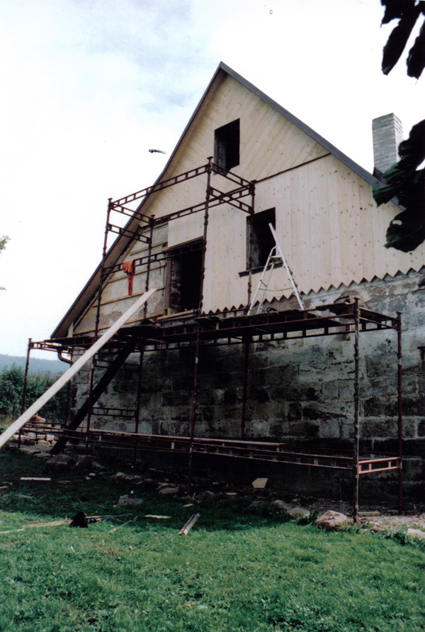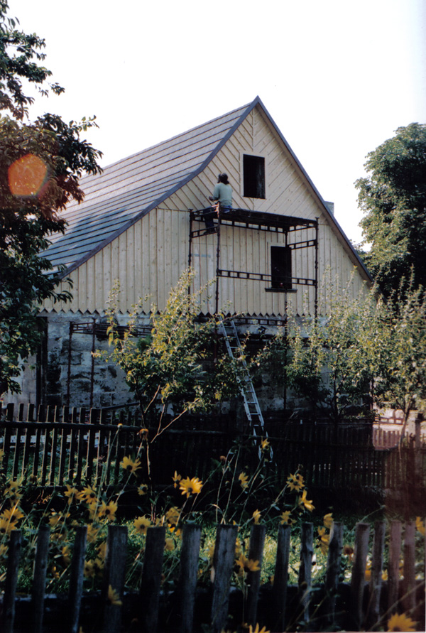 Prkna byla předsušena a jednostraně ohoblovaná. Nosná konstrukce z latí 6x4cm